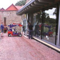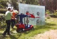 The KS400 Offroad site robot is designed for lifting, carrying, and manipulating glass and window items of up to 400kgs on site or within factories. The Offroad wheels assist with navigating uneven ground.