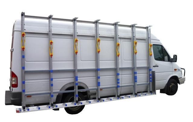 The Glass Racking Company van mounted glass frails are lightweight, strong and versatile, with additional roof racking and / or gutter clamping mounting options available.