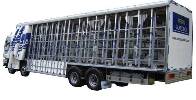 Our glass trolley trucks and trailers are custom designed to suit your needs and your customers requirements thus reducing handling time and the possibility of re-work claims. Ranging from two to ten trolley transporters, each has full glass carrying rack capacity to carry oversized sheets that do not fit onto trolleys on their own.