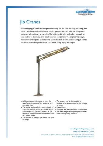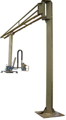 Jib canes (also known as swing cranes) are a cost effective way to lift and move heavy glass items within a factory.